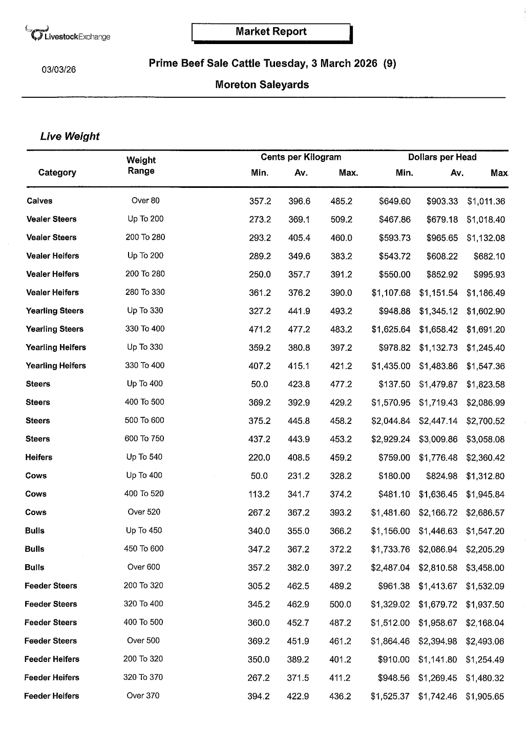 Agents Boyd O’Brien Bartholomew reported a yarding of 686 head of cattle. A good yarding of heavy pasture fed steers that sold to fully firm rates, with the leads of milk & 2 tooth steers returning $2700. Heavy cows and 4-6 tooth heifers sold in line with last week’s very strong rates. Another good yarding of vealer & yearling heifers came to hand and sold very well with processors and restockers both chasing quality young heifers that were on offer.