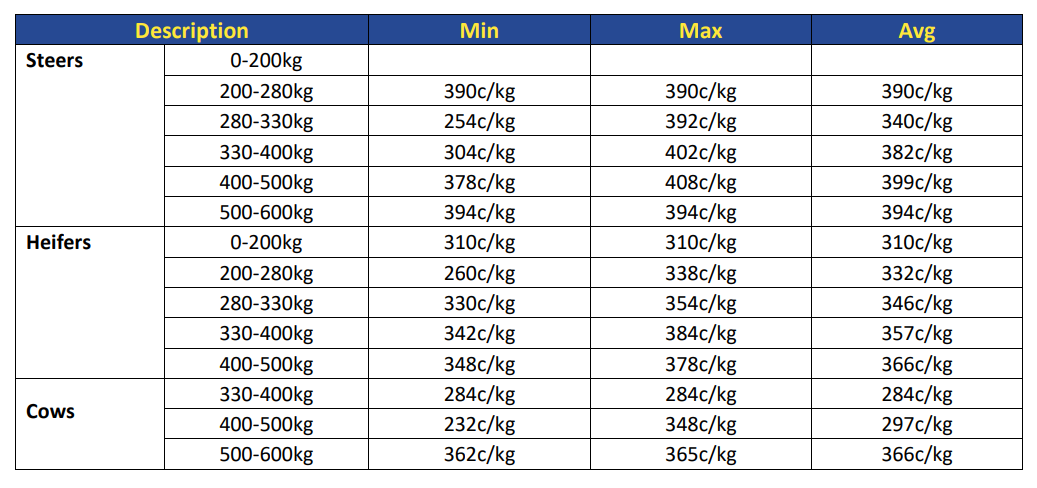 The Nebo combined agents yarded a total 430 head, comprising of 168 steers, 195 heifers, 58 cows and 8 bulls and micks. The market held firm to slightly dearer across all areas of the sale with good returns throughout the day. Buyer attendance was in full swing with various meatworks from across the state making an appearance. Buyers from southeast QLD were active as well at local buying power staying consistent. With rain on the radar, buyer competition proved a very firm market across all areas.
