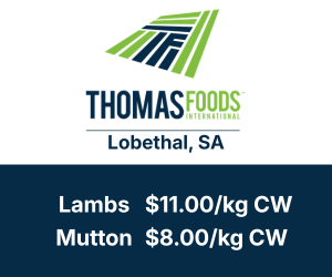 There was a small yarding of 506 mutton (1,294 less) and extra heavy sheep made $296 to $300 and medium $166 to $220/head.